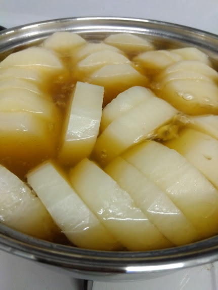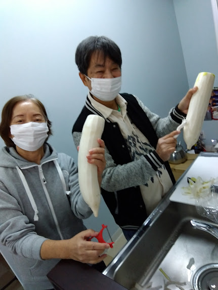 大根の仕込みはお二人のメンバーさんと午前中から開始し、お二人とも皮むきやカットを手際よく進めて下さり、下茹でし柔らかな大根が完成。
