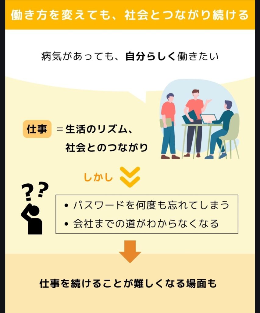 若年性認知症の方にとって、仕事は“生活のリズム”であり、“社会とのつながり”でもあります。