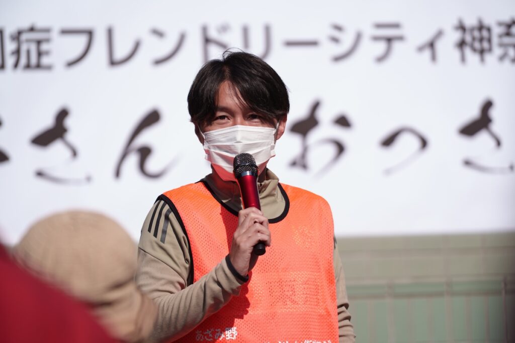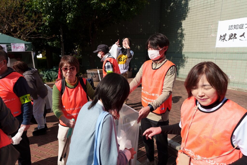 今回の会場では、東急SレイエスFCさんが考案されたゴミ拾いウォーキングを、あざみ野認知症の人に優しい街づくりの皆さま、メンバー、ご家族、祭り参加者の皆さまと、総勢50名程で実施しました。