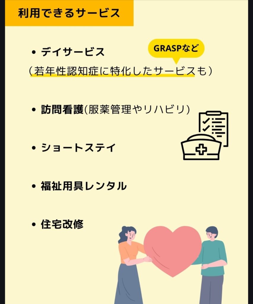 ・デイサービス(若年性認知症に特化したサービスも※我らGRASPです)