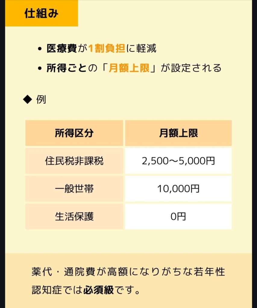 ►薬代・通院費が高額になりがちな若年性認知症では必須級です。