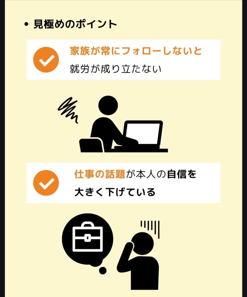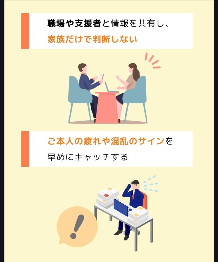 ・職場や支援者と情報を共有し、家族だけで判断しない