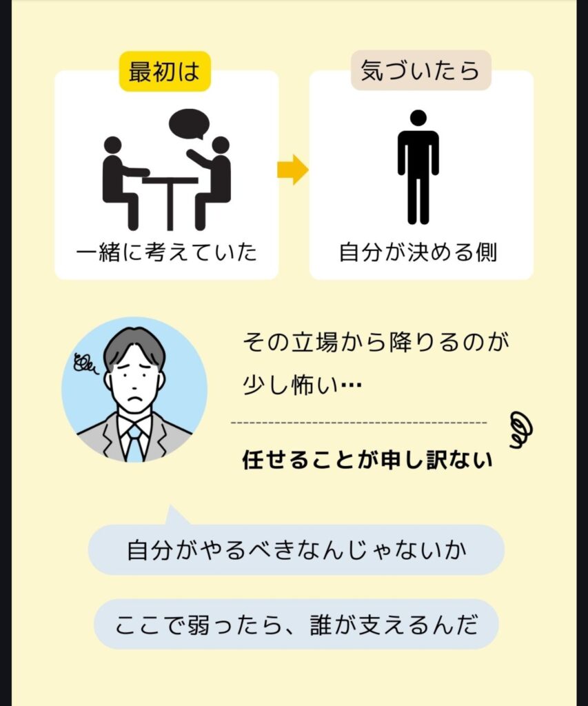 最初は「一緒に考えていた」はずなのに、いつの間にか、自分が決める側になっている。
