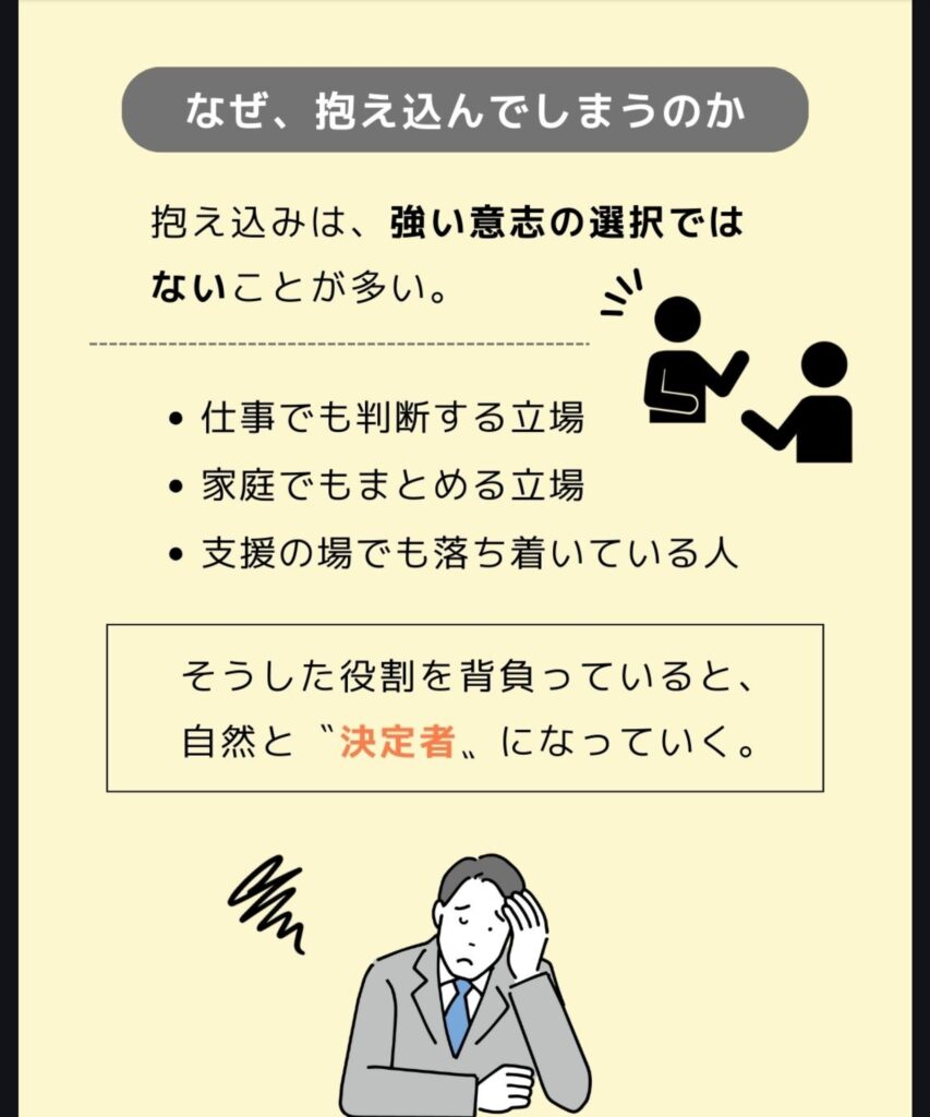 だから、自分の中で処理する。それが繰り返されるうちに、抱え込みは習慣になる。