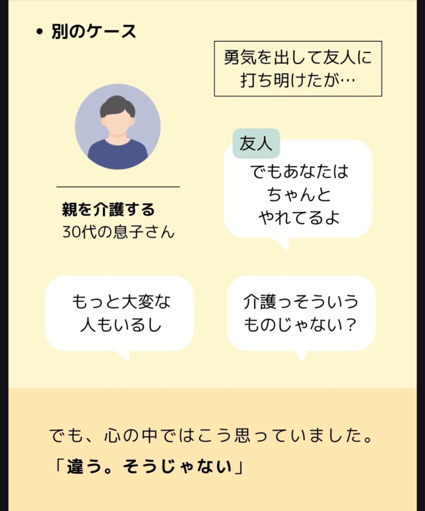 「でもあなたはちゃんとやれてるよ」 「もっと大変な人もいるし」 「介護ってそういうものじゃない?」