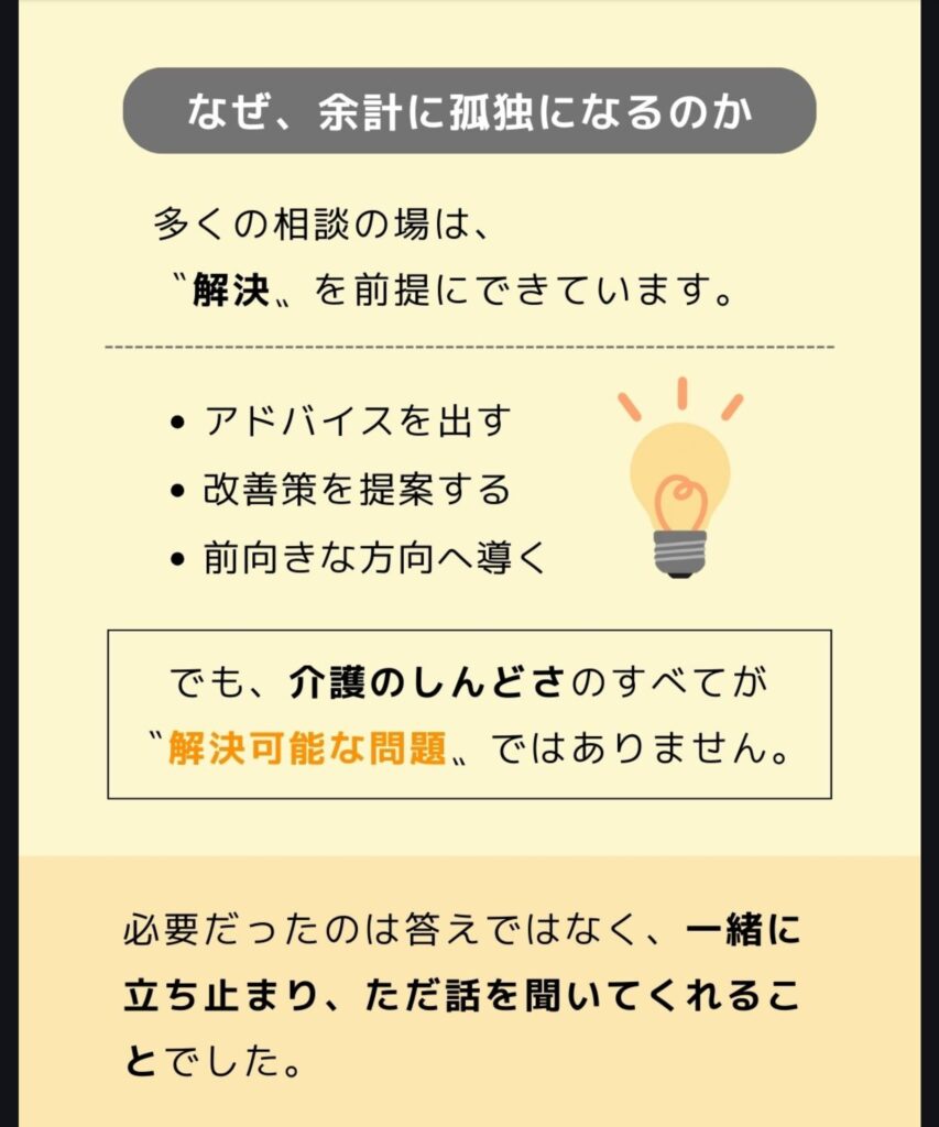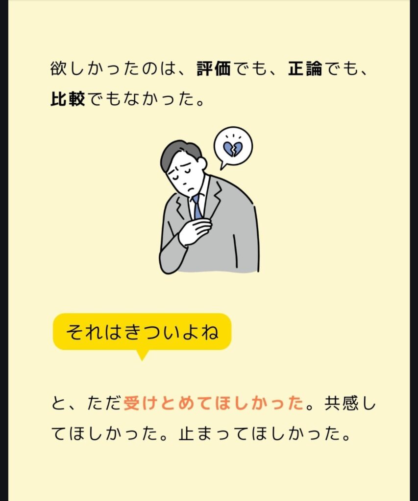 でも、あなたが求めていたのは、解決ではなく…共に立ち止まることだった。