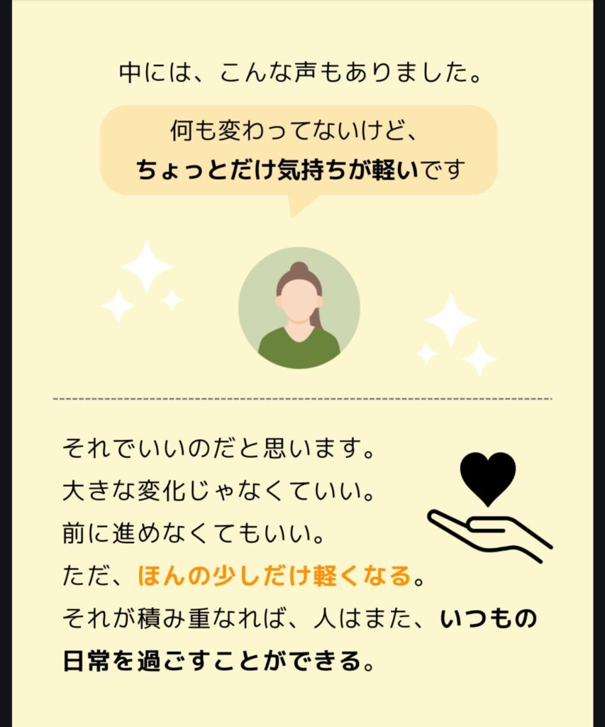 「何も変わってないけど、ちょっとだけ気持ちが軽いです」