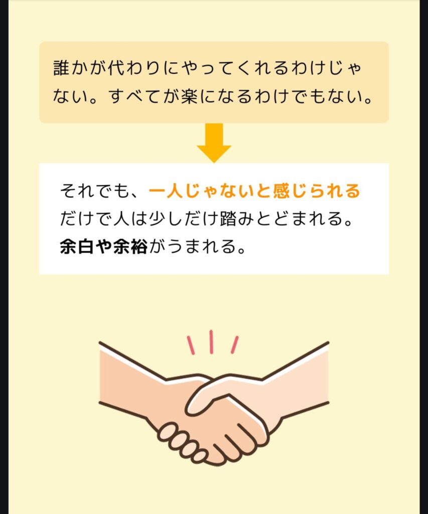 それでも、一人じゃないと感じられるだけで、人は少しだけ踏みとどまれる。余白や余裕がうまれる。