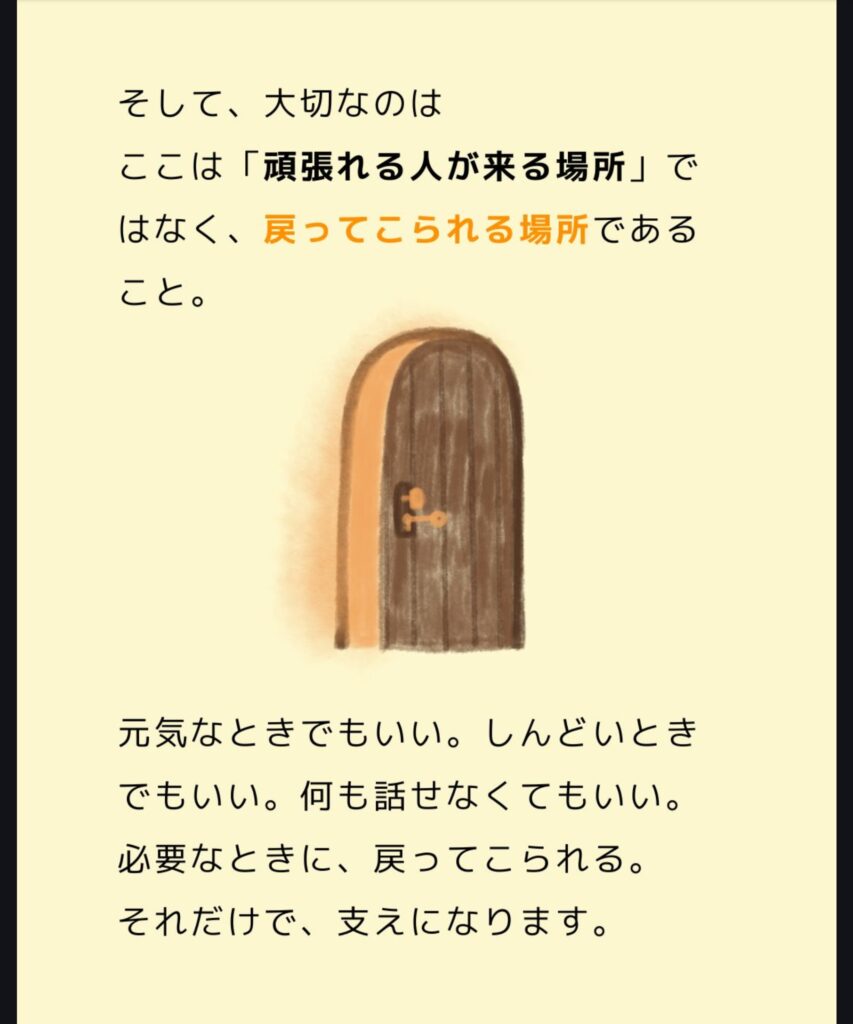 ここは、「頑張れる人が来る場所」ではなく、戻ってこられる場所であること。
