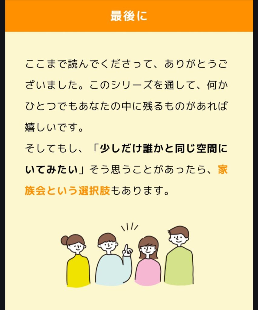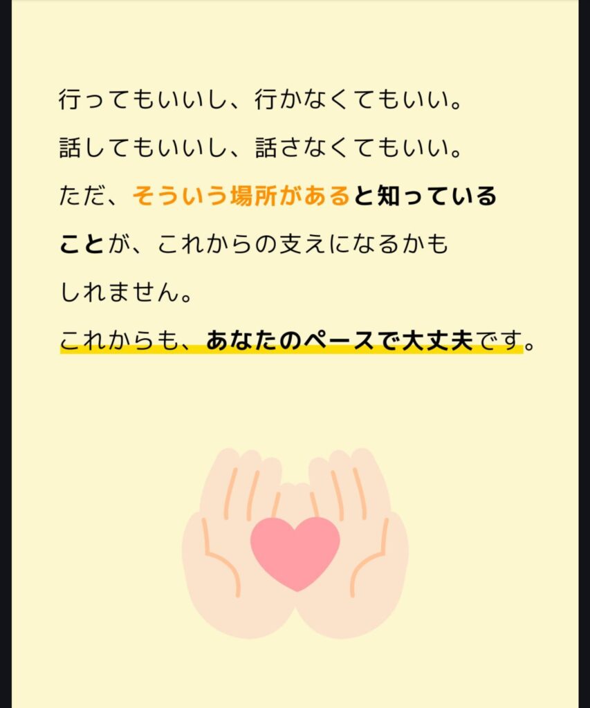 ただ、そういう場所があると知っていることが、これからの支えになるかもしれません。