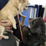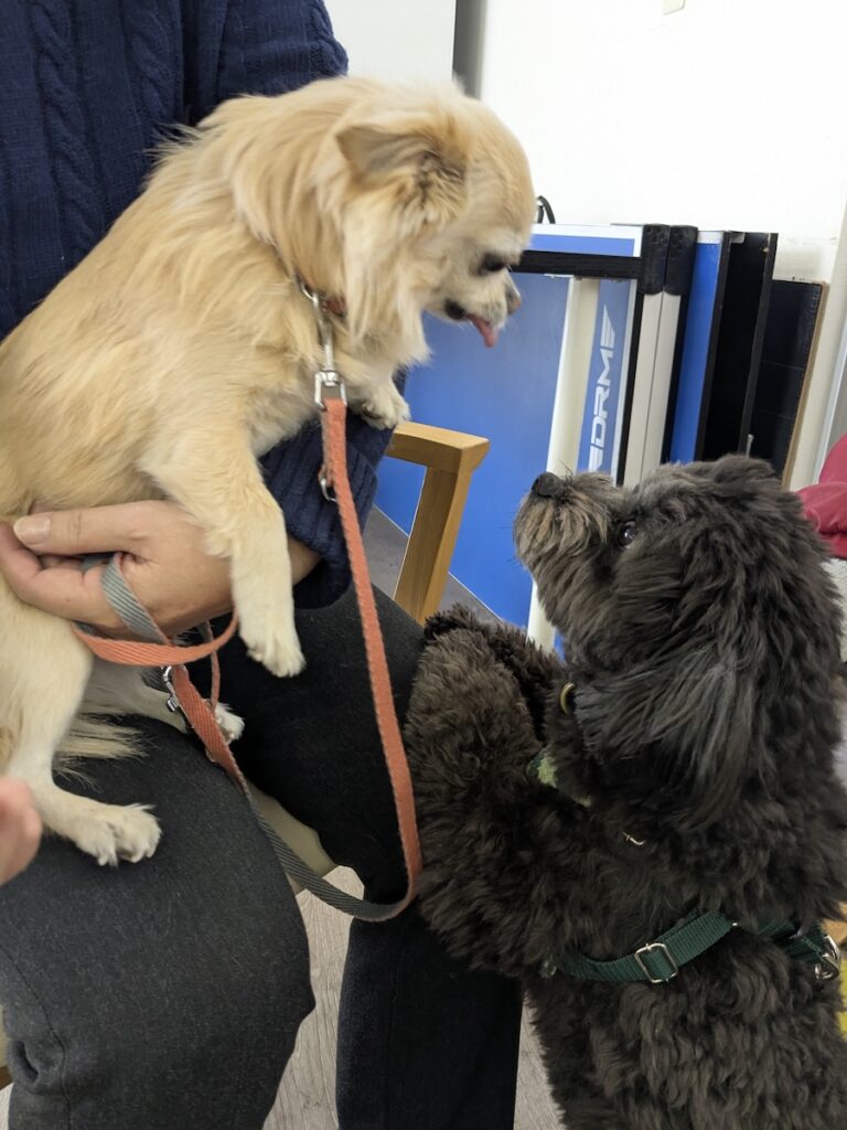 青葉の事業所では、セラピー犬と過ごす時間があります。